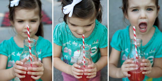 I found this watermelon lemonade recipe from Rockstar Diaries (I found her blog a few months ago from a friend and LOVE it. She has great style.) It tastes great! I think Hazel will definitely have to sell it at her lemonade stand next summer!